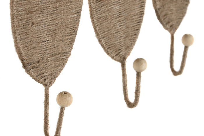 DKD Home Decor Perchero Pared Tropical Natural Yute Metal Set de 3 Piezas 4 x 26 x 12 cm