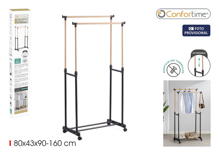 Perchero Doble Wood 80X43X90-160Cm Confortime