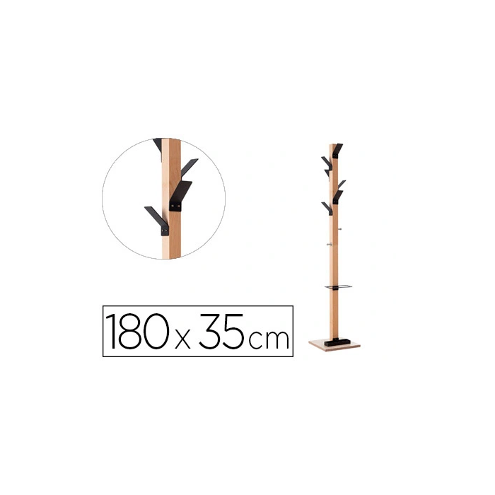 Paperflow Perchero Madera Haya 8 Colgadores con Paraguero Negro Altura 180 cm