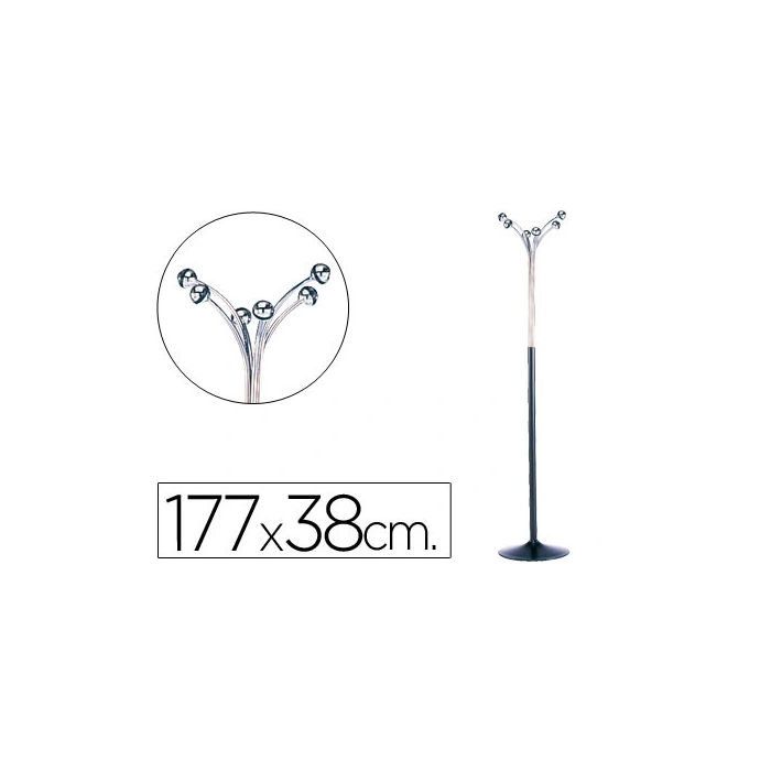 Sie Perchero metálico pie 6 colgadores negro/cromado 38 x 177 cm