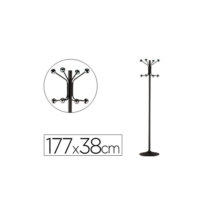 Sie Perchero Metálico de Pie con 8 Colgadores, Negro, Ø38x177 cm