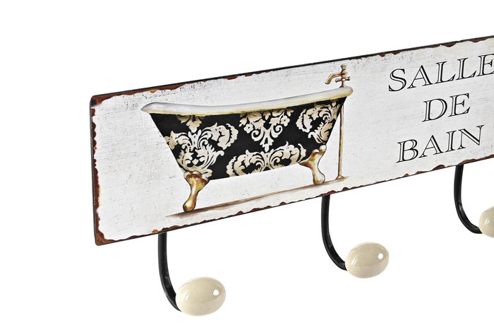 DKD Home Decor Perchero Pared Tradicional Metal Negro Blanco 4 Unidades 37 x 14.5 x 6 cm