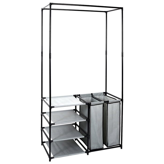 - Coloca tu ropa y complementos ordenadamente en este vestidor de 3 espacios: _ Espacio para colgar _ 2 bolsas para ropa _ 4 baldas