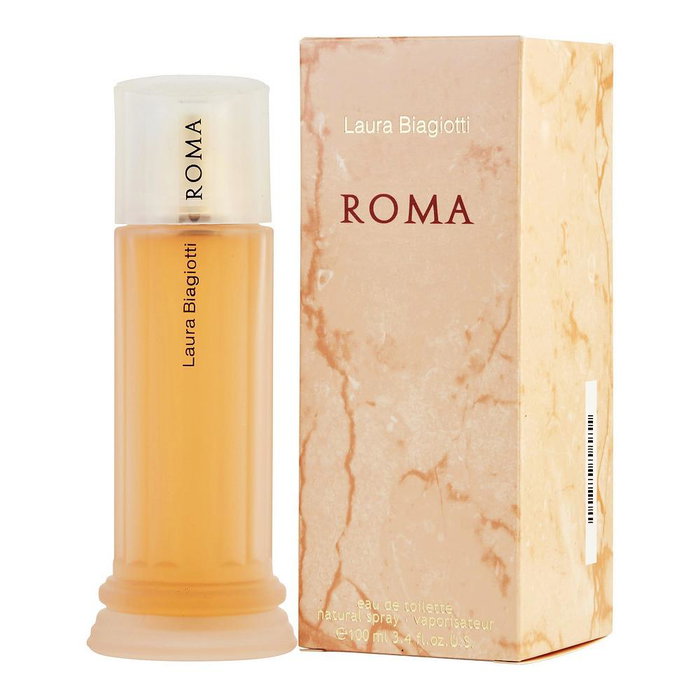 Laura biagiotti roma eau de toilette vaporizador 100 ml. fragancia especiada para una mujer sensual y fascinante. la fragancia roma es una experiencia olfativa apasionante y sensual, es una fusión ideal de dulzura y pasión, de belleza y encanto. familia olfativa: oriental especiado. notas de cabeza: grosella negra, bergamota siciliana, pomelo rosa, menta y jacinto. notas de corazón: clavel, jazmín, lirio del valle y rosa. notas de base: ámbar, sándalo, pachulí de singapur, almizcle, algalia, vainilla, musgo de roble y mirra.