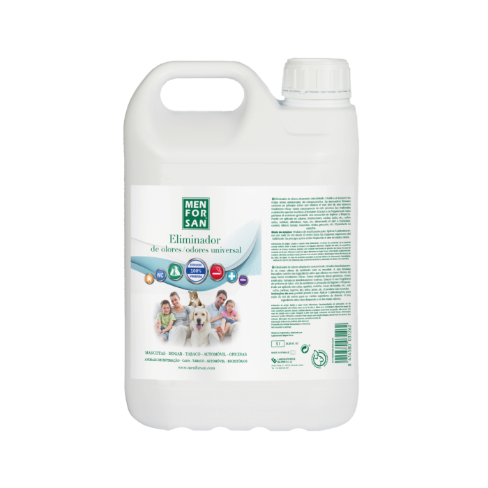 - Observaciones: Eliminador de olores altamente concentrado para el entorno con mascotas. Su innovadora formula contiene un principio activo que elimina el mal olor formando enlaces químicos con los compuestos de bajo peso molecular causantes de los malos olores como las animas y los compuestos de azufre entre otros. Como consecuencia de este proceso, las moléculas malolientes quedan inactivadas.