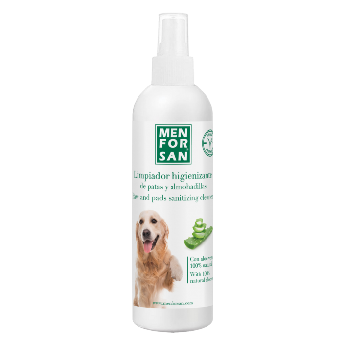 - Observaciones: Limpiador muy suave con aloe vera de uso directo para higienizar las patas y almohadillas de cualquier raza de perros después de los paseos. Elimina todo rastro de suciedad y proporciona una higiene completa, dejando la zona limpia y suave. Spray hidro alcohólico con aloe vera 100% natural de cultivo ecológico y glicerina.