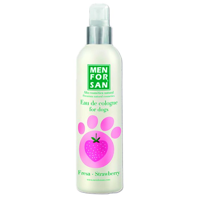 - Observaciones: Agua de colonia fresa para perros con fragancias frutales naturales especialmente creadas para proporcionar después del baño un olor fresco y un intenso efecto desodorante muy agradable respetando la piel y las propiedades olfativas del animal. No contienen alcohol y tienen ph neutro, careciendo de efectos irritantes y evitando que el perro estornude después de su aplicación.