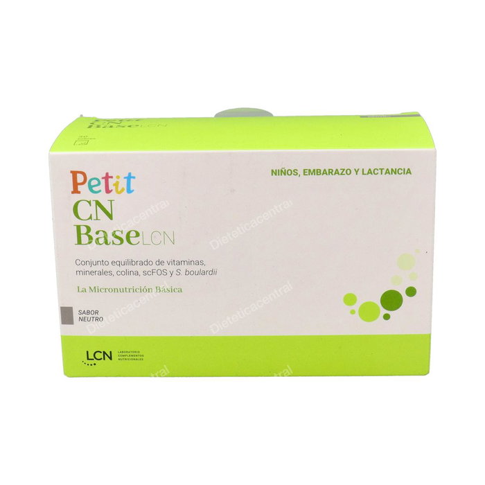 Indicaciones: 23 micronutrientes esenciales en sus formas más activas y biodisponibles sumadas a los efectos beneficiosos de los probióticos y prebióticos. Indicado sobre todo para apoyar el desarrollo en niños en edad de crecimiento e idóneo para que lo tomen mujeres embarazadas o en periodo de lactancia. El Petit Cn Base LCN, es un complemento alimenticio que contiene una combinación de los 23 micronutrientes más importantes, que son útiles para el desarrollo normal de la gestación y en los años de crecimiento. Este complemento nutricional es rico en vitaminas en forma activa y minerales en su forma más biodisponible, lo que garantiza una absorción y asimilación óptima de estos nutrientes por el organismo. Además, Petit Cn Base también tiene una buena cantidad de fibra, ya que aporta fructooligosacáridos, lo que ayuda a mantener el funcionamiento intestinal en condiciones normales. Asimismo, contiene S.boulardii, un probiótico que apoya las funciones de todos los otros micronutrientes y ayuda a su normal absorción intestinal. Es un complemento nutricional que contiene un conjunto de nutrientes básicos en su forma más activa, como el L-metilfolato (folato/ácido durante fólico) al normal mantenimiento nervioso.