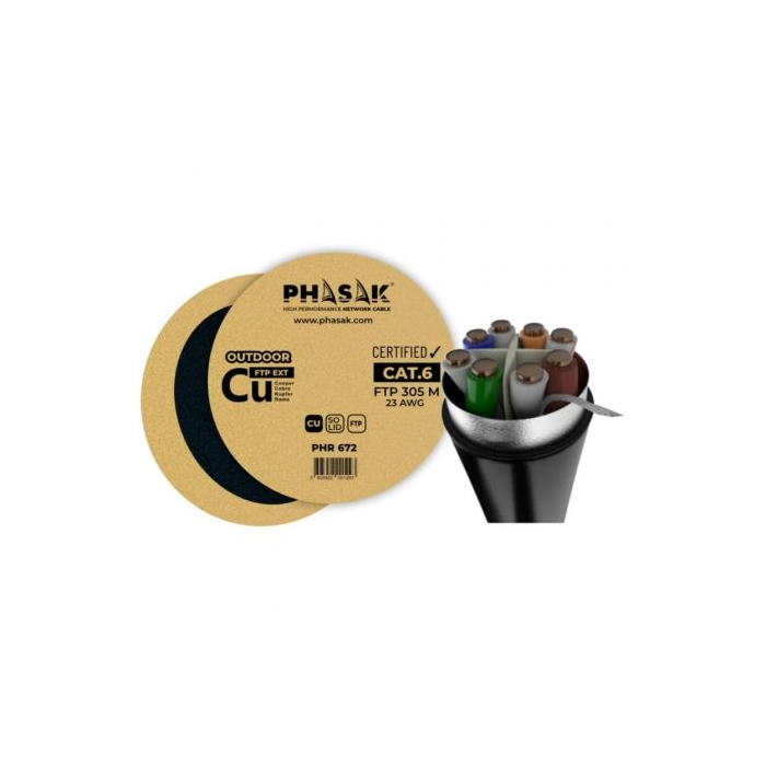 Bobina de Cable exterior FTP Cat.6 100% cobre sólido AWG23 305 m – PHR 672 | PHASAK