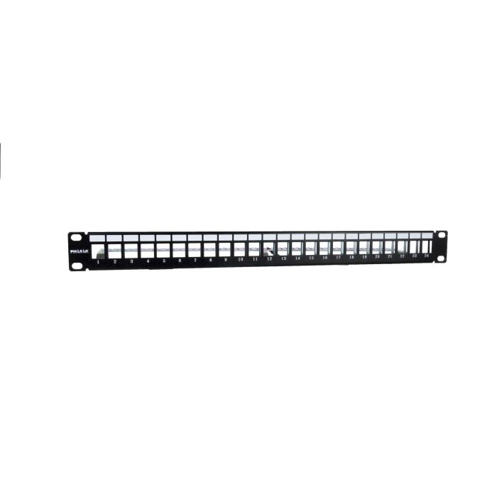 PHASAK Panel frontal 19" para 24 conectores 1U con org. de cables FTP PHASAK negro