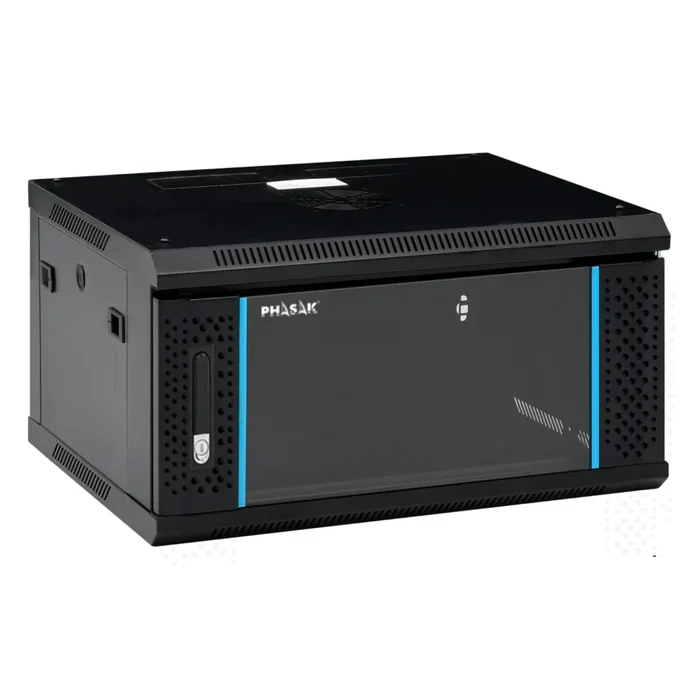 Phasak PHO 2106 Armario Rack de Pared Pro 6U - 600x450mm Negro con Ventilación, Iluminación y Cerradura para Equipos TI 19"