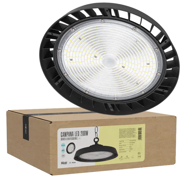 La Campana LED BX3 LIGHT con driver Lifud regulable 1-10V y chip Philips es una solución de iluminación industrial de alto rendimiento diseñada para ofrecer máxima eficiencia energética, fiabilidad y control preciso de la intensidad lumínica en entornos profesionales. Equipada con componentes de primera calidad, garantiza estabilidad, durabilidad y excelente rendimiento en instalaciones de gran exigencia. Características técnicas destacadas: Sistema de regulación: 1-10V (control analógico progresivo) Driver: Lifud de alta eficiencia Chip LED: Philips Tecnología LED: Alto rendimiento lumínico Alta eficiencia energética (lm/W) Encendido instantáneo sin parpadeos Larga vida útil operativa Grado de protección IP65 (según modelo) Ventajas principales: Regulación estable y precisa de la intensidad Componentes premium para mayor fiabilidad Excelente disipación térmica Bajo mantenimiento Ideal para naves industriales, centros logísticos, almacenes, fábricas y pabellones deportivos Las campanas BX3 LIGHT con driver Lifud y chip Philips ofrecen un equilibrio perfecto entre eficiencia, control y durabilidad, convirtiéndose en una solución profesional para proyectos industriales exigentes