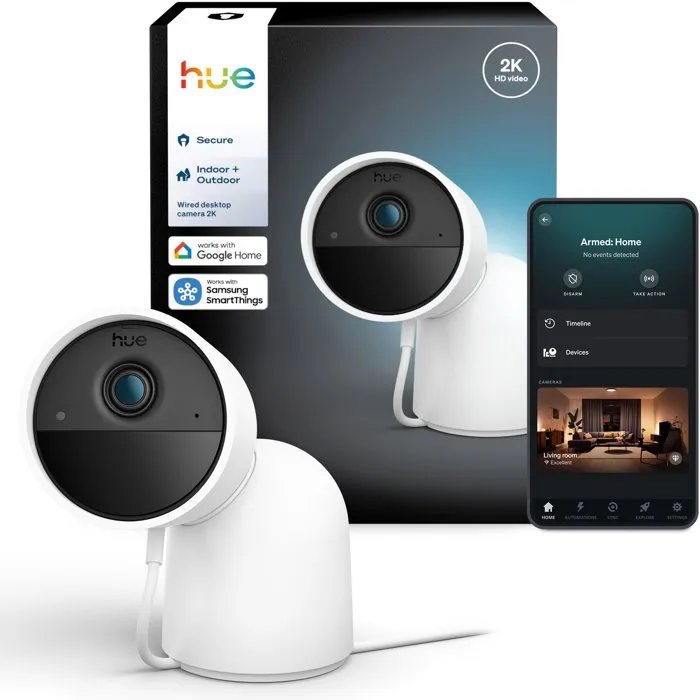 Philips Hue Cámara Inteligente de Exterior con Cable AACMB46453, Visión Nocturna, 2K, Color Blanco