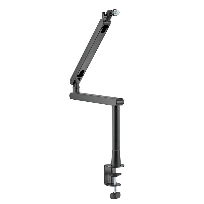 Además, cuenta con una abrazadera de montaje resistente, diseñada para sujetarse firmemente a tu escritorio o mesa de trabajo sin dañar su superficie. La abrazadera se ajusta a diferentes grosores, lo que te permite utilizar el brazo en una amplia gama de configuraciones de estudio.