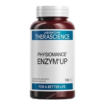 Indicaciones: Sinergia de enzimas que apoyan un normal funcionamiento digestivo. Physiomance Enzym Up, un producto de Therascience, es una fórmula de complejo de enzimas digestivas que ha sido diseñada para apoyar la digestión y asimilación de nutrientes en el organismo. Physiomance contiene una mezcla de 14 enzimas digestivas de origen vegetal, incluyendo alfa-galactosidasa, lactasa y papaína, que son responsables de la descomposición de hidratos de carbono, lípidos y proteínas en el tracto digestivo. La lactasa puede ser útil para aquellos que sufren de intolerancia a la lactosa, ya que ayuda a descomponer la lactosa en azúcares más simples que son más fáciles de digerir. Además, las lipasas y proteasas ayudan a descomponer las grasas y proteínas, respectivamente, lo que permite una normal digestión de estos nutrientes. Las enzimas en Enzymup apoyan la normal digestión de las fibras, lo que es importante para el normal desempeño digestivo. La xilanasa y hemicelulasa son enzimas responsables de la descomposición de las fibras, y al mantener la normal digestión, se puede reducir la sensación de pesadez en el estómago después de comer alimentos ricos en fibra.