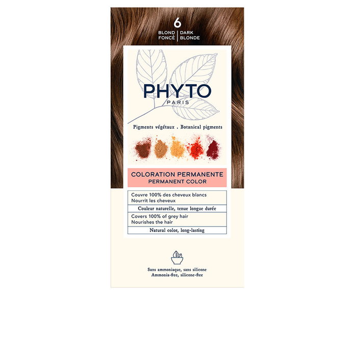 Phyto Tinte Permanente de Cabello PHYTOCOLOR, Tono #6 Rubio Oscuro, Sin Amoniaco y Sin Siliconas, Cobertura 100% Canas, 4 Unidades