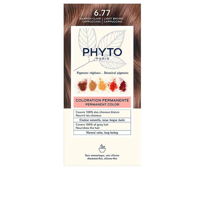 Phyto PHYTOCOLOR Tinte Permanente Sin Amoniaco #6.77 Marrón Claro Capuchino para Cobertura Canas - 4 Unidades