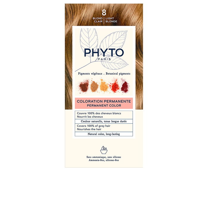 Phyto PhytoColor #8 Rubio Claro - Tinte Permanente para el Cabello Sin Amoniaco, 4 Unidades - Cobertura 100% Canas, con Pigmentos Vegetales