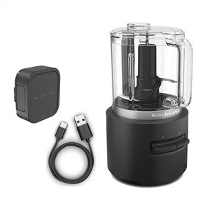 Picador de alimentos inalámbrico y compacto. Cuenta con una batería recargable de iones de litio de 12 V que frece un rendimiento y un tiempo de ejecución óptimos sin las restricciones de los cables. Su bol de trabajo sin Bisfenol A de 1,18 L con pico vertedor y asa pica, mezcla y hace purés a la perfección. Permite verter las salsas y aliños con facilidad. Tiene dos velocidades y funcionamiento de pulsos en la tapa para disfrutar de un control preciso para controlar la velocidad de picado y obtener fácilmente los resultados esperados. Con su cuchilla multiusos de acero inoxidable podrás triturar frutos secos, frutas y verduras crudas, así como picar perejil, cebollino o ajo para facilitar la preparación de cualquier receta. Incluye un batidor de varillas con el que tendrás un mayor número de posibilidades: bate, remueve e incluso monta nata.