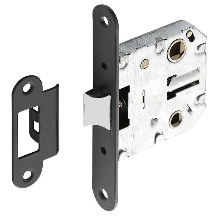 Picaporte unificado con canto redondo, entrada de 50 mm en acabdo negro de la marca Tesa Assa Abloy.