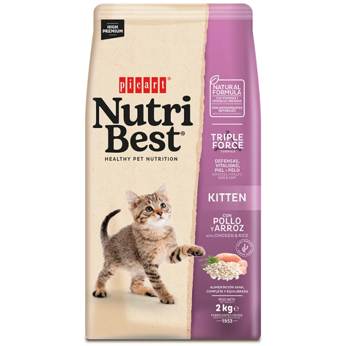 Alimento completo y equilibrado para gatos adultos de la marca Picart. Esta fórmula de Nutribest con pollo proporciona una nutrición óptima para tu felino.