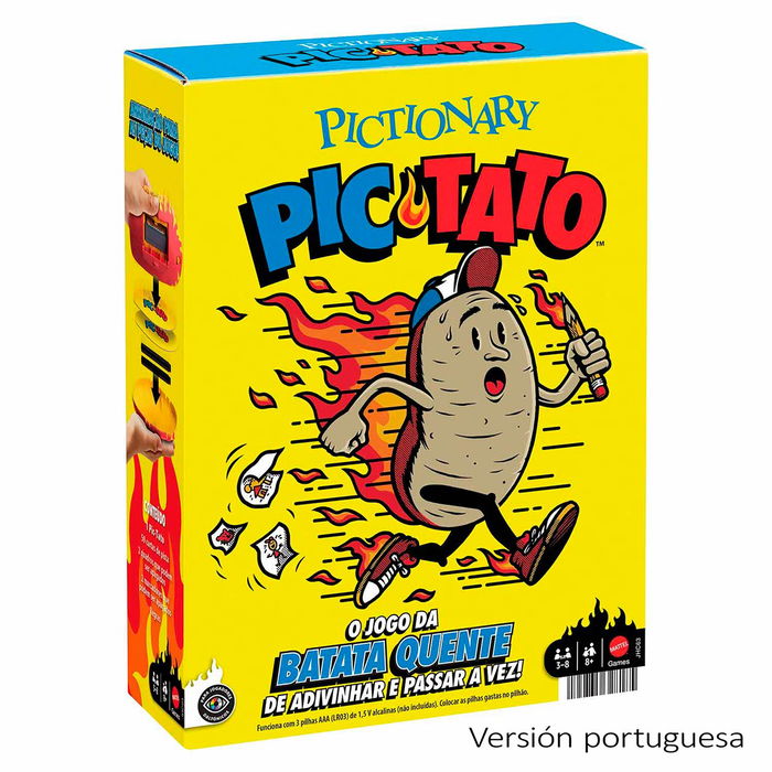 El Pictionary Pic-Tato es un juego similar al de la patata caliente en el que los jugadores dibujan, adivinan y pasan de turno rápidamente mientras suena la música. ¡Si te pillan con la Pic-Tato, perderás todos tus puntos!IDIOMA PORTUGUÉS