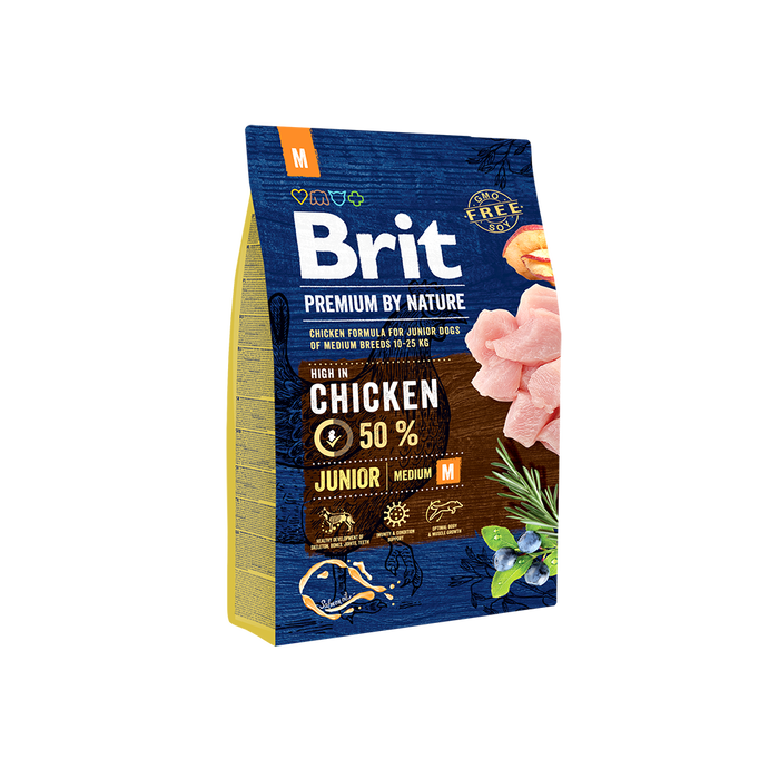 Brit Premium Dog Nature Junior Alimento para Perros 3kg, Pollo 50%, Inmunidad, Crecimiento Muscular y Óseo
