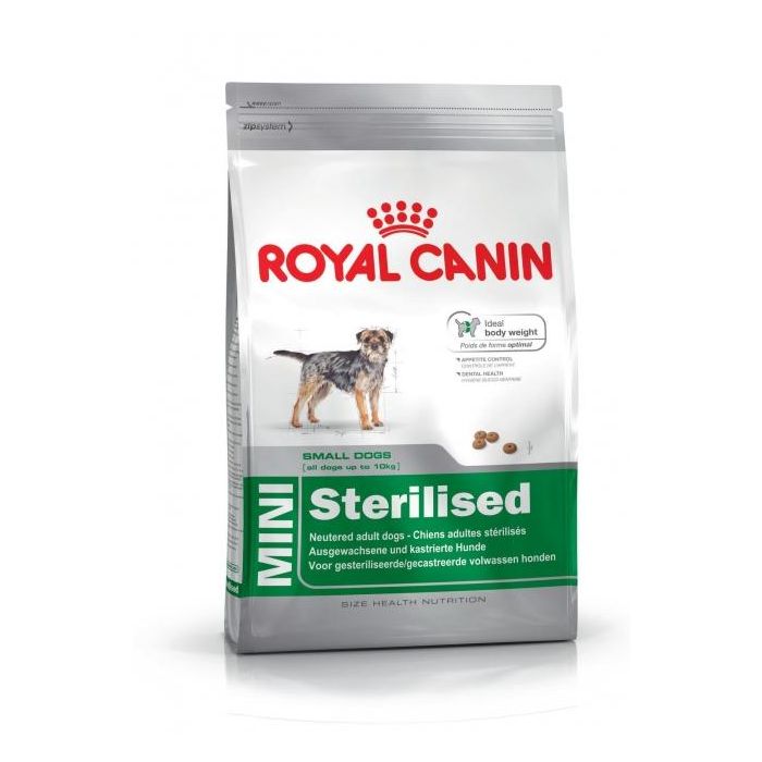 - DESCRIPCION Producto especialmente indicado para perros esterilizados de tamaño mini (De 1 a 10 kg de peso adulto), a partir de los 10 meses de edad. Ayuda a mantener el peso ideal de los perros esterilizados, favorece la sensación de saciedad entre comidas y protege la salud dental de los perros de tamaño mini. El alimento Mini Sterilised ayuda a mantener el peso óptimo de los perros esterilizados gracias a unas pautas de racionamiento ajustadas y a su fórmula, que combina una tasa alta de prote¡nas con una tasa baja en grasas, y Lcarnitina para ayudar al metabolismo de las mismas. Su fórmula saciante reduce la sensación de hambre entre comidas y, además, contribuye a mantener la salud dental de los perros de tamaño mini ya que debido a sus caracter¡sticas tienen mayor predisposición a problemas bucodentales.