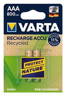 Las pilas recargables VARTA, hechas con un 11% de materiales reciclados, combinan sus ventajas como baja auto descarga y la tecnología "Lista para usar" con el respeto por el medio ambiente. Precargadas para un uso inmediato. Compatibles con todos los cargadores y dispositivos.