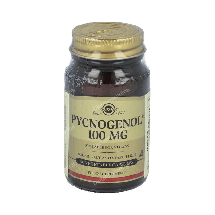Composicion: Por 1 cápsula: Extracto pulverizado de corteza de pino marítimo francés (Pinus pinaster) Pycnogenol)........100 mg Diluyente: celulosa microcristalina; cubierta de la cápsula vegetal: hidroxipropilmetilcelulosa; antiaglomerantes: ácido esteárico vegetal, estearato de magnesio vegetal.