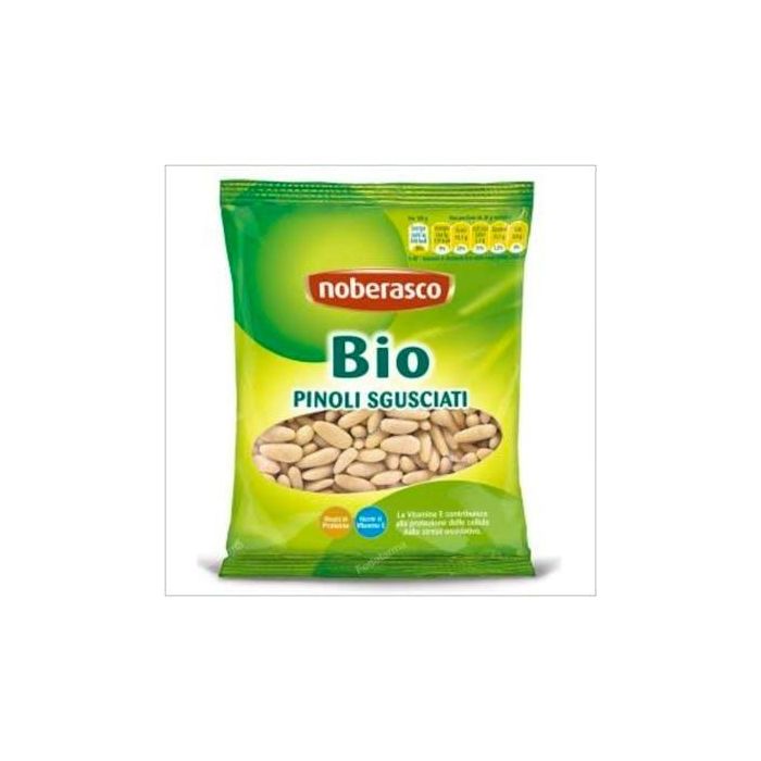 Composicion: Piñones sin cáscara de agricultura biológica. *Puede contener trazas de cacahuetes, frutos secos con cáscara.