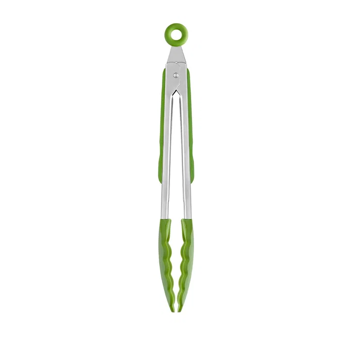 BRA A197004 Pinzas de Cocina Prior de 285 mm, Mango Acero Inoxidable 18/10 y Cabezal Silicona Verde, Resiste hasta 200°C, Apto Lavavajillas