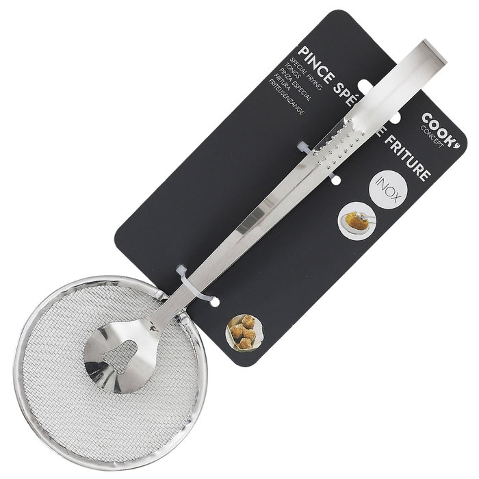 - Pinzas con escurridora incorporada ideales para las frituras. Para coger los alimentos y escurrirlos al mismo tiempo.