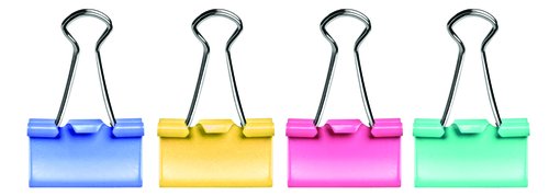 Pinzas de fuerte sujeción, fabricadas en acero de alta calidad. Ideal para sujetar distintos volúmenes de papel. Se presenta en envase de plástico transparente.