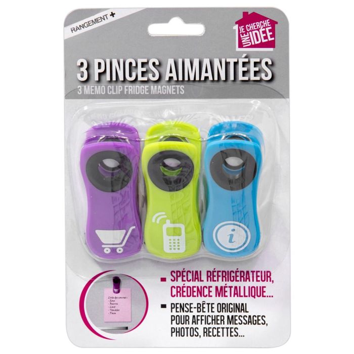 Je cherche une Idee Juego de 3 Pinzas Magnéticas para Nevera para Mensajes y Fotos