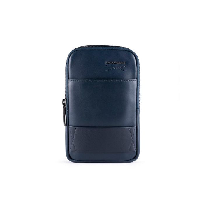 Piquadro, Organizador de teléfono, Bolso bandolera de cuero, Azul, 18 x 12 x 2,50 cm, Para hombres