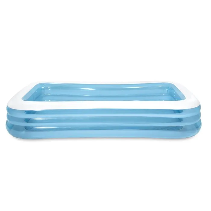Piscina rectangular familiar INTEX - Dimensiones 305x183x56 Cm - 3 cámaras de aire con una válvula cada una - Capacidad de aproximadamente 999 litros - Altura del agua 37Cm - Drenaje - Niño y niña - A partir de 3 años - Entregado por unidad