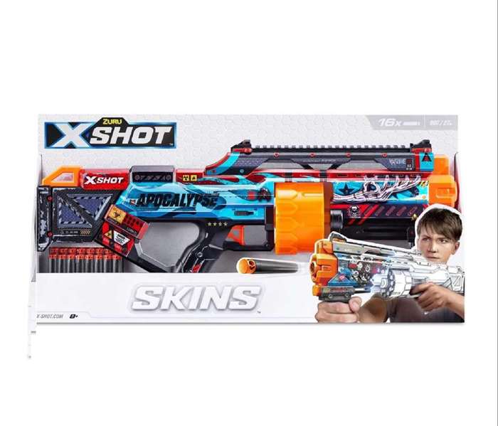 - Contenido caja: 1x X-Shot Skins Last Stand Blaster 16x Air Pocket Technology Foam Darts