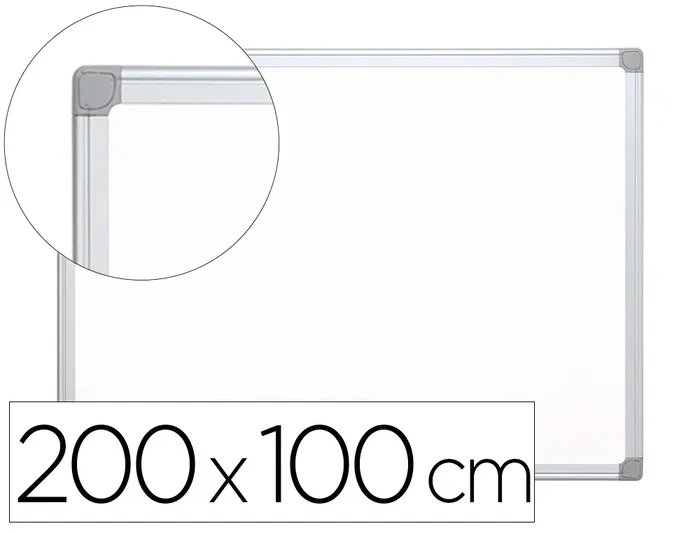 Superficie LACADA blanca. Marco de aluminio plata mate y cantoneras redo ndeadas de plástico gris claro. Su acabado permite borrar con mayor facilidad sin que queden marcas. Provista de accesorios de fijación a la pared. Bandeja incluida. Utilizar solo rotuladores para pizarras blancas. Por su tamaño y características es ideal para centros de formación: academias, institutos, universidades, etc. Adaptable a formato vertical.