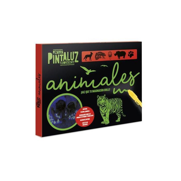 PLAYTIME Pizarra Pintaluz Animales Español 28x35cm Juguete Educativo con Linterna y Tinta Invisible
