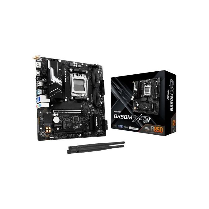 ASRock 90-MXBSH0-A0UAYZ Placa Base B850M-X WiFi R2.0 AMD AM5 B850 2xDDR5 128GB Wi-Fi 6E Bluetooth 5.2 Micro-ATX