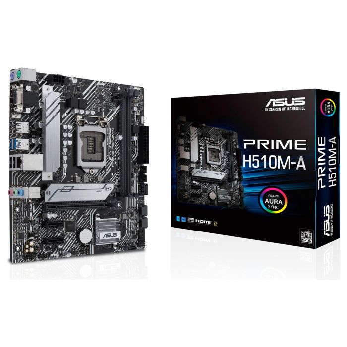 ASUS PRIME H510M-A, Intel, LGA 1200 (Socket H5), Intel® Celeron®, Intel® Core™ i5, Intel® Core™ i7, Intel® Core™ i9, Intel® Pentium®, DDR4-SDRAM, 64 GB, DIMM