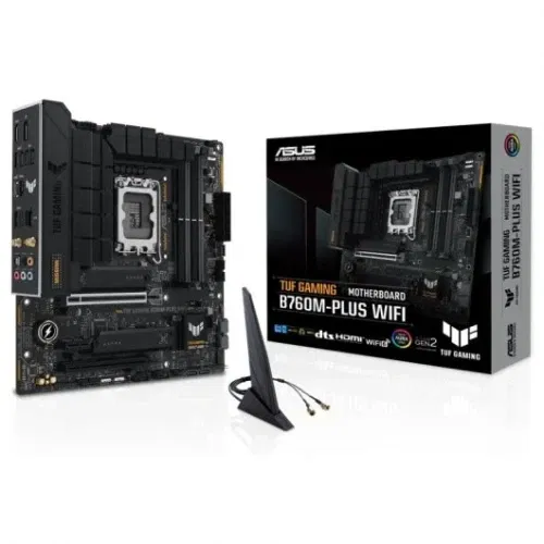 Placa asus tuf gaming b760m plus wifi toma todos los elementos esenciales de los últimos procesadores Intel® y los combina con funciones listas para jugar y durabilidad comprobada. Diseñada con componentes de grado militar, una solución de alimentación mejorada y un sistema de refrigeración integral, esta placa base supera las expectativas con un rendimiento sólido como una roca para juegos de maratón. Las placas base TUF GAMING también se someten a rigurosas pruebas de resistencia para garantizar que puedan soportar condiciones en las que otras pueden fallar. Estéticamente, este modelo incorpora una placa de identificación en relieve y elementos de diseño geométrico para reflejar la confiabilidad y estabilidad que definen la serie TUF GAMING.