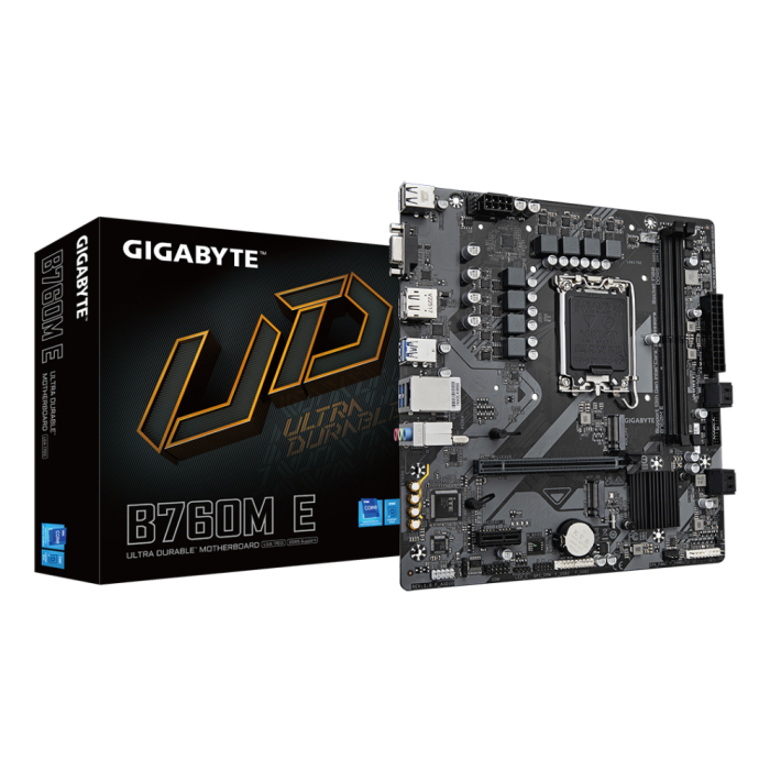 La Gigabyte B760M E es una placa base en formato micro ATX dise�ada para ofrecer una base s�lida y actualizada a equipos de sobremesa con procesadores Intel de 12�, 13� y 14� generaci�n. Con soporte para memoria DDR5 hasta 7200 MHz, conectividad moderna y amplias opciones de expansi�n, esta placa es ideal para usuarios que buscan un rendimiento fiable y preparado para el futuro, ya sea para trabajo, gaming ligero o uso general avanzado.