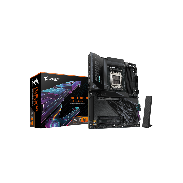 GIGABYTE X870E AORUS ELITE X3D Placa Base – Compatible con procesadores AMD Ryzen 9000, VRM digital de 16+2+2 fases, hasta 9000 Hz DDR5 (OC), 2 x PCIe 5.0 + 2 x PCIe 4.0, Wi-Fi 7, LAN 5 GbE, USB 4, AMD, Zócalo AM5, AMD Ryzen 7000 Series, AMD Ryzen 8000 Series, AMD Ryzen 9000 Series, Zócalo AM5, DDR5-SDRAM, 256 GB