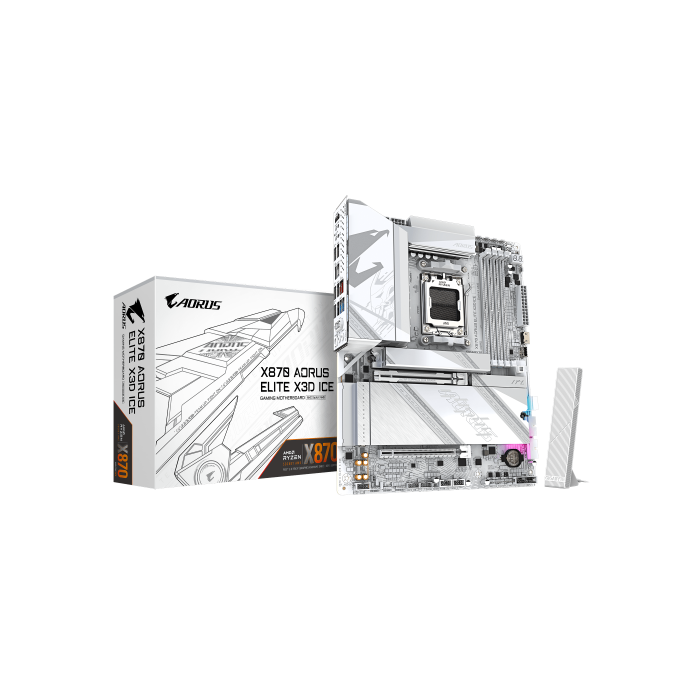 GIGABYTE X870 AORUS ELITE X3D ICE Placa Base - Compatible con procesadores AMD Ryzen 9000, VRM digital de 16+2+2 fases, hasta 9000Hz DDR5 (OC), 2xPCIe 5.0 + 2xPCIe 4.0, Wi-Fi 7, LAN 2.5GbE, USB 4, AMD, Zócalo AM5, AMD Ryzen 7000 Series, AMD Ryzen 8000 Series, AMD Ryzen 9000 Series, Zócalo AM5, DDR5-SDRAM, 256 GB