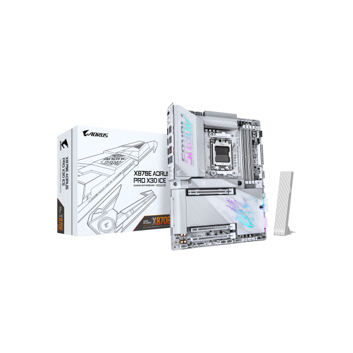 GIGABYTE X870E AORUS PRO X3D ICE Placa Base – Compatible con procesadores AMD Ryzen 9000, VRM digital de 18+2+2 fases, hasta 9000 Hz DDR5 (OC), 2 x PCIe 5.0 + 2 x PCIe 4.0, Wi-Fi 7, LAN 5 GbE, USB 4, AMD, Zócalo AM5, AMD Ryzen 7000 Series, AMD Ryzen 8000 Series, AMD Ryzen 9000 Series, Zócalo AM5, DDR5-SDRAM, 256 GB