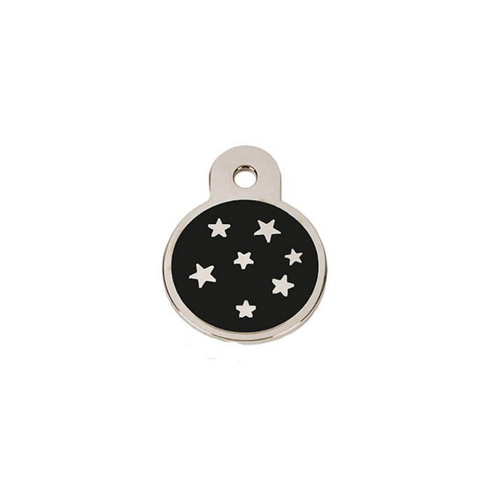 La placa identificativa para collar PetScribe Passion de la marca Imarc es un accesorio diseñado especialmente para perros que destaca por su refinado acabado y funcionalidad. Presenta una forma circular decorada con un elegante motivo de estrellas, que aporta un toque distintivo y estético. Está fabricada en un material sólido bañado en plata H925, una aleación reconocida por su alta pureza y resistencia, lo que garantiza durabilidad y una apariencia sofisticada a lo largo del tiempo. Su color negro combina sobriedad con estilo, mientras que los detalles en plata acentúan su diseño, facilitando tanto la visibilidad como la integración con cualquier collar. Además, esta placa permite la opción de grabado personalizado en la parte trasera, facilitando la inclusión de información esencial como el nombre de la mascota o datos de contacto, aspecto fundamental para la identificación y seguridad del perro. Gracias a su tamaño compacto y forma redonda, se adapta cómodamente a cualquier collar estándar sin comprometer la movilidad del animal ni el confort durante su uso diario. Este producto combina a la perfección funcionalidad y estilo, adaptándose a las necesidades de dueños que buscan una solución práctica y estética para la identificación de sus mascotas. En conjunto, la PetScribe Passion de Imarc es una placa identificativa que reúne calidad, diseño y personalización, posicionándose como una elección acertada para quienes valoran la seguridad y el buen gusto en los complementos para perros.