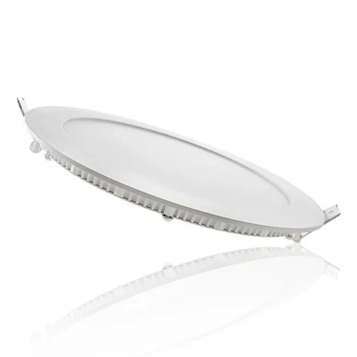 La placa de LEDs circular de 192mm de diámetro con dimensiones ultrafinas (18mm), ofrece soluciones para oficinas, fábricas, supermercados, tiendas y para uso residencial.Puede ser instalada directamente a las tomas de corriente suministradas por la red eléctrica (85-265VAC) con una frecuencia de servicio de 50/60Hz. Cuenta con una alta eficacia (78 Lm/W) consumiendo 15W mediante LEDs del tipo SMD2835 y logrando proporcionar un flujo luminoso de 1170Lm distribuidos uniformemente por un difusor de plástico opalizado de donde se obtiene un índice de reproducción cromática de 80. Aporta una iluminación equivalente a una bombilla incandescente de 90W, su consumo representa un valor de 15kWh/1000h, reduciendo la cantidad de energía facturada y las emisiones de gases contaminantes a la atmósfera. Esta placa está alimentada con un driver no dimable incluido en el paquete que debe ser conectado directamente a la red, con un conector de salida compatible con la conexión de la placa (36-65VDC, 300mA), adicionalmente se incluyen los accesorios necesarios para la instalación de la placa. Acabado en color blanco construido con aluminio. La placa tiene un grado de protección IP25 (válido para polvo y humedad en interiores), además de ser suficientemente robusto para las exigencias mecánicas requeridas. Esta placa está disponible en blanco natural (4200°K), blanco frío (6000°K) y blanco cálido (3000°K). La temperatura de color indicada puede sufrir oscilaciones correspondientes a una tolerancia del 7%. Los downlight LED son ideales para la iluminación general en espacios que exigen un alto rendimiento y periodos prolongados de encendido continuo. Y es por eso llevan incluido un disipador de aluminio de alta calidad, lo que contribuye a que la emisión de calor de la luminaria LED sea mínima. Además son muy fáciles de instalar y al ser tan finas se pueden colocar en falso techo con poca altura donde no se podrían emplear soluciones más voluminosas.