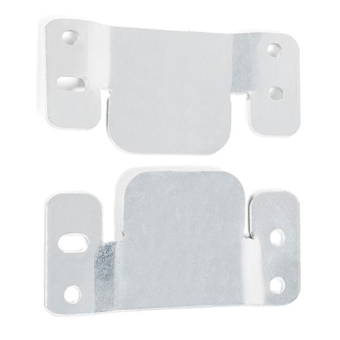 Está placa para unir módulos de sofá está fabricada en hierro con acabado zincado. Se suministra en juegos de 2 piezas.